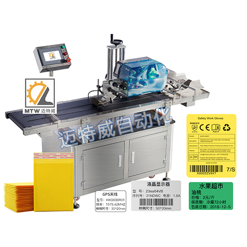 貼標(biāo)機(jī)與流水線的護(hù)欄結(jié)構(gòu),對接順暢,中間過渡處理不會影響物品刮傷或者損壞;貼標(biāo)機(jī)與流水線的速度匹配,流水線的速度跟貼標(biāo)的速度要適應(yīng)。